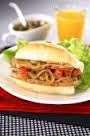 Opção 4: pão rústico integral com carne desfiada, vinagrete, alface crespa e uma fruta para acompanhar.